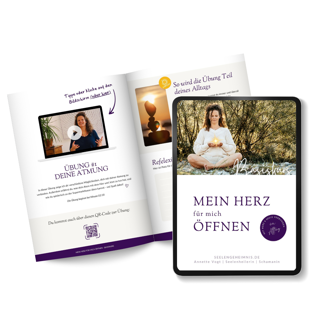 Das 20-seitige eBook ist dein roter Faden durch den Kurs. Neben den Kursvideos findest du darin auch Alltagstipps, Hintergundwissen und Raum für deine persönlichen Reflexionen.